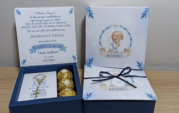 Quando chega a hora de convidar os padrinhos de batismo, a gente sempre quer fazer algo especial, né? Afinal, ser padrinho ou madrinha é uma responsabilidade linda e cheia de carinho. E uma forma bem simbólica (e fofa!) de fazer esse convite é com aquelas caixinhas personalizadas que, além de lindas, já mostram o quanto essa escolha foi feita com o coração.